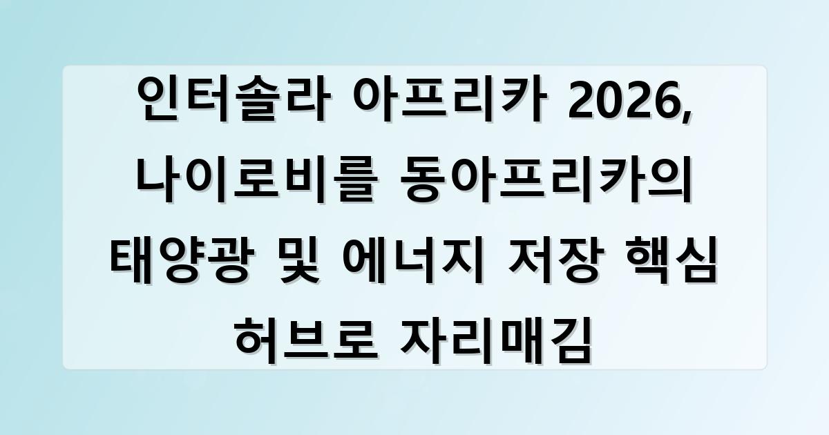 2026년 2월 3일부터 4일까지 케냐 나이로비의 사리트 엑스포 센터(Sarit Expo Centre)에서 ‘인터솔라 아프리카 2026(Intersolar Africa 2026)’이 개최될 예정이며, 이는 2025년 성공적으로 개최된 인터솔라 서밋 아프리카(Intersolar Summit Africa)를 기반으로 확장된 본격적인 국제 전시회 및 컨퍼런스이다.