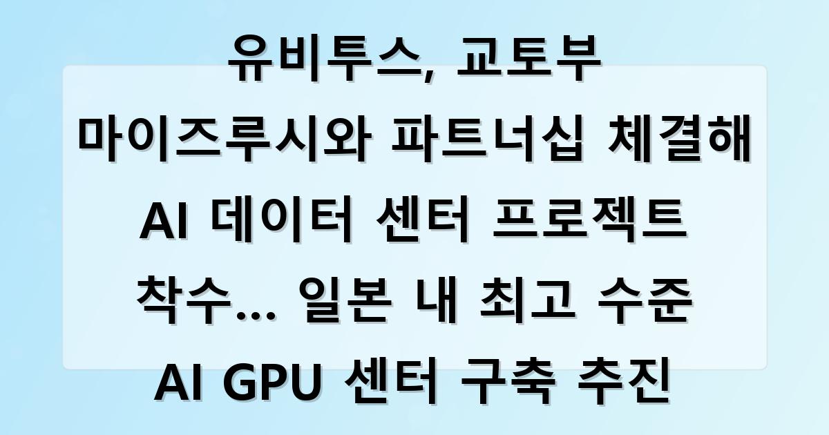 유비투스, 교토부 마이즈루시와 파트너십 체결해 AI 데이터 센터 프로젝트 착수… 일본 내 최고 수준 AI GPU 센터 구축 추…