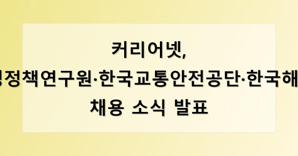 커리어넷 보도자료 커리어넷, 중소기업기술정보진흥원·한국해양교통안전공단·한국특허전략개발원·중앙사회서비스원·차세대융합기술연구원·코레일유통·제주관광공사 채용 소식 발표 취업 포털 커리어가 중소기업기술정보진흥원, 한국해양교통안전공단, 한국특허전략개발원, 중앙사회서비스원, 차세대융합기술...